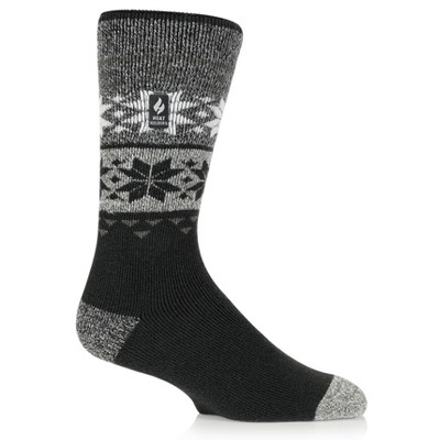 Keep feet warm on the coldest of days and pull on this pair of fairisle pattern, medium thickness, crew length Heat Holders® LITE™ for men, the warmest thermal sock.