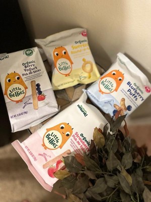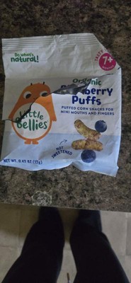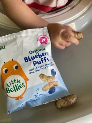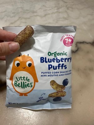 [This review was collected as part of a promotion.] These blueberry puffs are my baby nephews favorite out of all the Little Bellies. They were the perfect size snacks between feeding. We didn't have to worry him choking because they dissolved. He just couldn't get enough of them.