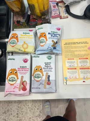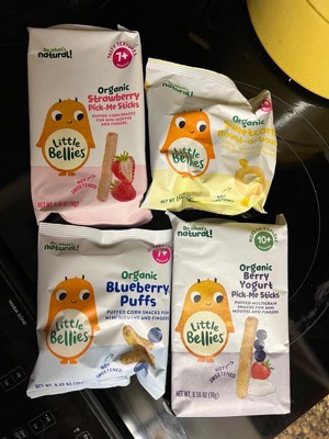 [This review was collected as part of a promotion.] My kids and I recently tried four different Little Bellies varieties including; Blueberry Puffs, Berry Yogurt Pick-Me Sticks, Strawberry Pick-Me Sticks, and Sweetcorn Round-o-bouts all my little ones really enjoyed them! I love the fact that they are organic, Non-GMO and wholesome! It makes me feel better about what I am giving my children/what they are eating. I would definitely recommend these product to others!