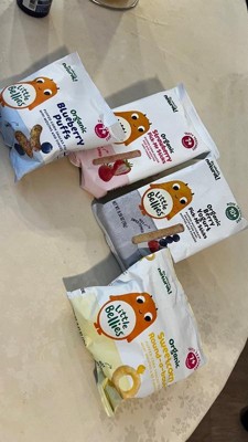 [This review was collected as part of a promotion.] Organic Blueberry Puffs - Perfect for little hands, these puffs are a delightful snack for babies learning to self-feed. The texture is great for developing fine motor skills, and the blueberry flavor adds a subtle sweetness that babies love.