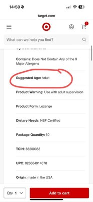Sounds confusing, right? The product name says it's for kids, but the suggested age is for adults.