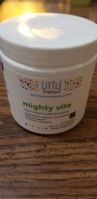 [This review was collected as part of a promotion.] My daughter tried the Little DaVinci Mighty Vite Fruit Punch Dietary Supplement. She took it once a day mixed in juice (we used lemonade). It did not totally dissolve, however, she didn't seem to mind the taste at all and it wasn't super grainy. I liked the fact that there was nothing artificial about this vitamin and also that it was once a day versus multiple times a day. It has all the necessary nutrients plus probiotics w/ no odd taste or aftertaste. My daughter doesn't like the "fishy" taste of many vitamins, and I don't like the sugar content. I will definitely continue using this product for my daughter and will recommend to other friends & parents!