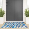 Little Dean Retro Blue Checkered Pattern Welcome Mat - Society6