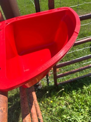 Little Giant 26 Quart Plastic Hanging Corner Livestock Animal Feeder Bucket, Red