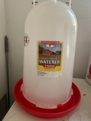 [This review was collected as part of a promotion.] Great 3 gallon water for chickens I like that it’s bigger and last longer so you don’t have to fill it every day it lasts 5 days with our chickens it’s nice and sturdy the design is perfect it’s become my new favorite chicken waterer versatile easy to use very easy to clean and refill