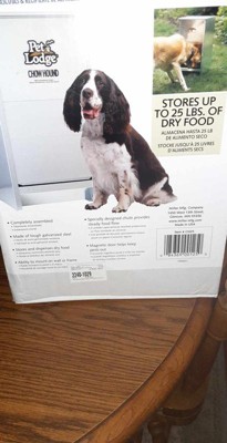 [This review was collected as part of a promotion.] I am so glad I got my new Little Giant Dry Food Automatic Steel Dog Feeder Chow Hound. This is perfect for making sure my dogs have plenty of food while we are away. The automatic feeder holds up to 25 lbs of food. I like that I can pour the entire bag of food into the container. It is made very well and has a magnetic closure so your dog just nudges the door open and can eat. My dogs had no problem at all. I recommend for anyone with dogs.