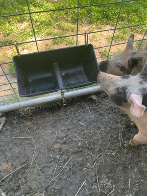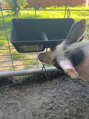 [This review was collected as part of a promotion.] I received this product for free. I was so excited to be getting this product since I live on a farm and could use this product. I hooked it onto the fence in the pig pen then I added their grain. It works so easy. It has clips on each side so it can easily be clipped to any fence and can be moved at anytime.. My pigs really enjoyed it also.