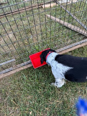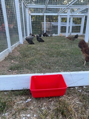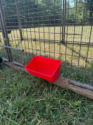 [This review was collected as part of a promotion.] I was very excited to get this product to try out since I just built a new chicken coop and pen. First I love the red color and that it does not look like it will fade with sun exposure. The Feed Trough Bucket Fence Feeder is made of a high impact polyethylene plastic and feels very durable which is important when it comes to animals. It comes with two heavy duty carabiner clips which make it extremely easy to hang from your fence. Originally I had planned to hang the trough from my chicken coop pen for their oyster shell. However my pen is made of 1/4 inch hard cloth and it was difficult to use the clips. I decided to change direction for now and mount it to a 2 x4 inch fence by using the clips to attach to the wire and use for my dogs. What I like about this product is that it is very versatile and it can be used for a variety of animals ( dogs, chickens, goats) or even to hold tools, medicine and other supplies. I am still working on my pen and I am thinking of mounting it inside my pen for the chickens oyster shell by screwing it to a board. The mounting holes will make that easy to do. Either way you have options of how to mount and many options of how to use. Meanwhile my dogs like having a water station by my chicken coop. 😊