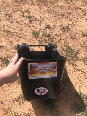 The Little Giant Hook Over Portable Feeder is ideal for field, pasture, trailer, stall, or kennel. Performs well for a variety of animals, including horses, goats, sheep, and dogs. The durable, impact-resistant Little Giant feeder has a molded-in bracket that easily hooks over any 2-by-wide board to instantly deliver a sturdy feed bucket. For more permanent installations, simply install two screws (not included) in the holes provided. Stackable for carrying or storage. The top of the feeder features a convenient carrying handle so you can carry one or more feeders in one hand.