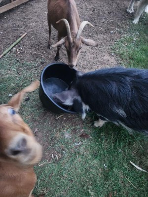 [This review was collected as part of a promotion.] i use it for my goats water they love it. It’s a decent size it holds a lot I have one that’s been out in the weather for years and is still holding up as well as it was used in a pig pen and still in pretty much new condition other than some fading.