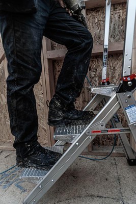 - Lightweight aluminum stepladder uses a non-slip staircase design for comfortable and sturdy use.