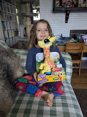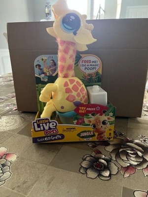 [This review was collected as part of a promotion.] This Little Live Pets Gotta Go Giraffe is similar to Flamingo Gotta Go. The bright yellow giraffe design is adorable and definitely stands out. The “Gotta Go” song is ridiculously catchy (my kids start humming after the song everytime they need to go potty), and the voice recording feature adds extra laughs. The whole feeding and pooping cycle is funny every time. The reusable “poop” (which is also the food) is a hit with my kids. They crack up watching Gigi do his thing, then scoop and drain it so they can start all over again. It only comes with one packet of food, and we noticed some of the pellets fall out during each cycle, so I'll look into purchasing some refills. Even when he’s not “pooping,” Gigi’s still a fun toy. He’s cute on a shelf, and the talk back function keeps the kids entertained. Batteries are included, so it’s ready to go right out of the box. Definitely a fun and silly toy that brings a lot of laughs!
