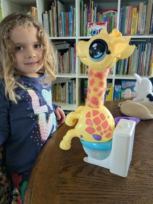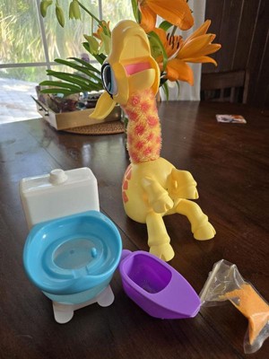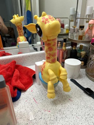 - HILARIOUS TOILET SONG - Feed Gigi her Giraffe Food then listen as she chews and watch as her long neck wiggles. When she sings "Uh Oh! Gotta Go!", you'll know it's time to place her on the toilet and watch as she poos!