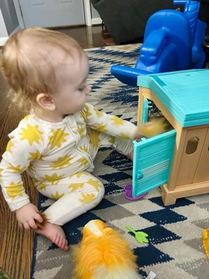 With enough love and attention, Mama’s heart will start to glow, indicating that a baby is on the way! Gently place her inside her interactive hutch. Now it’s time to wait.