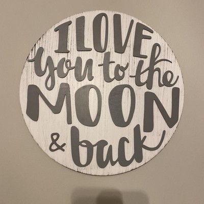 Little Love By NoJo Love You To The Moon and Back Round Wood Nursery Wall Décor - Gray and White