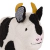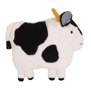 Welcome to the farm! The Little Love by NoJo Black and White Cow Shaped Decorative Pillow has playful 3D dimensional ears, a long tail with fringe accents, and dimensional horns. Made from plush Faux Shearling fabric in a black and white spotted color scheme, with gray and white gingham fabric inside the ears, black cordoroy hoofs, and a sweet embroidered face to make this pillow a favorite of boys and girls alike. Super soft 100% polyester plush Faux Shearling fabric and 100% polyester filler makes this loveable cow perfect for snuggles. Measures 16" x 14.25" x 5". A wonderful decorative accent for any nursery or toddler room, or as a takealong buddy for trips in the car, to grandma's house, or on the go. Perfect for any gift giving occasion, this sweet baby cow is sure to become a special friend for your little one. Coordinates with the Little Love by NoJo Pig and Goat shaped decorative pillows for a barnyard full of fun.