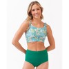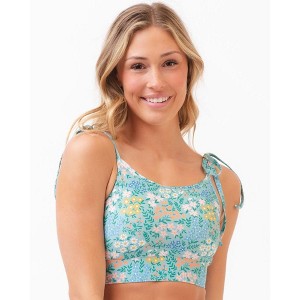 One of our most popular styles now in Little Meadow Floral.  Shoulder ties allow you to adjust for fit and support without sacrificing coverage.  Make it a set by pairing this crop top with matching bottoms or with solid Emerald for a bold look.80% nylon, 20% spandexProvides UV 50+ protectionDouble lined shelf bra with sewn-in bra padsMastectomy friendlyResponsibly made in Vietnam