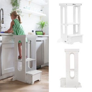 Our Explore 'N Store kitchen helper tower is a must-have piece of furniture for toddler parents. The Learning Tower for toddlers safely brings your inquisitive little helper to counter-height so they can comfortably participate in cooking, cleaning, crafts, or any other hands-on activity, all while encouraging independence and learning. Featuring a full-surround safety bar and anti-slip feet, these versatile and compact toddler towers are the perfect addition for energetic and constantly-growing toddlers. This children's kitchen stool features a compact profile ideal for small spaces, four-sided safety railings for security, a folding step that makes fit under kitchen counters, and an adjustable design that grows with your child. Our Learning Tower kitchen helper stand adjusts to four varying heights without tools (Level 1 : 10.59”, Level 2: 13.19”, Level 3: 15.79”, Level 4: 18.39”). In addition to meeting all government safety standards, our products have gone through ASTM testing. We go the extra step with Greenguard Gold Certification, contributing to cleaner indoor air and a healthier environment for you and your family, making it an intelligent investment for your family. Please note that assembly is required using the included hardware. Our Learning Towers are designed for children age 2 to 6 and hold up to 150 lbs. This household kitchen helper stool for toddlers foldable platform is constructed from the highest-quality layered birch and poplar, finished in child-safe materials, and can easily be wiped clean with a damp cloth. Assembled dimensions: 22.28"(L) x 19.56"(W) x 33.50" (H).