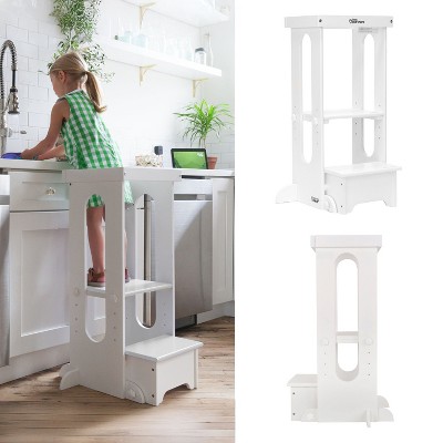 - Helper Tower: Convenient folding step design allows for easy storage when your child is done with their kitchen project; Includes four adjustable heights (Levels: 12.36”, 14.33”, 16.3”, and 18.27”)