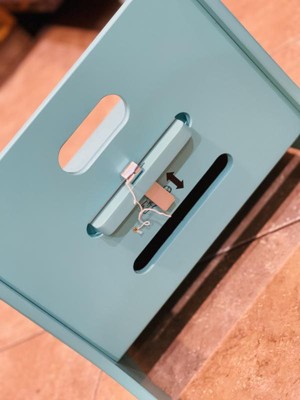 [This review was collected as part of a promotion.] This stool is sturdy and visually appealing. My one complaint is that the metal piece that locks the step in place is fastened to the stool with a flimsy piece of string.