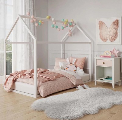 [This review was collected as part of a promotion.] Super cute design and great for a younger child. I love the fact that you can hang lights or tool from the valances and make it look super whimsical. The metal design makes it super durable and the bed being low to the ground. Makes it very safe.