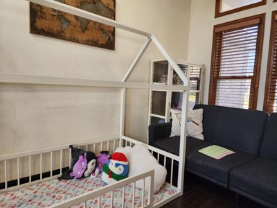 [This review was collected as part of a promotion.] Received complimentary from influencer for an honest review . This was really heavy as a women to bring up inside . However very beautiful and worth it . The only complaint is it’s really low to the ground which allows colder draft in cold days . My little one loves this and added the canopy curtains and this bed is a great play area as well paired with stuffed pillows how ever this is for smaller kids like toddler age won’t last as they grow up.