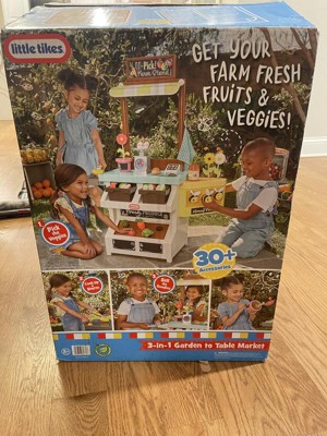 Little Tikes® realistic 3-in1 Garden to Market Table is inspired by those wonderful stands at the Farmers Market, combined with a side grill. This toy market and cooking playset comes with realistic accessories to make playtime creative, and children and kids’ imaginations thrive. Multiple kids can play at once and take turns planting, growing, cooking, selling, buying and enjoying the delicious goodies. The 30+ included and interactive role play accessories elevate pretend to a whole other level and allow kids to really see themselves in a variety of roles.