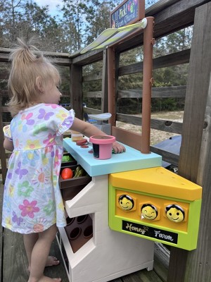 - ENCOURAGES IMAGINATION: With over 30 included and role play accessories kids can help the bees pollinate and make honey, grow fruits and veggies, weigh and sell the produce with the credit card reader, and then cook up an incredible pretend meal on the side grill.