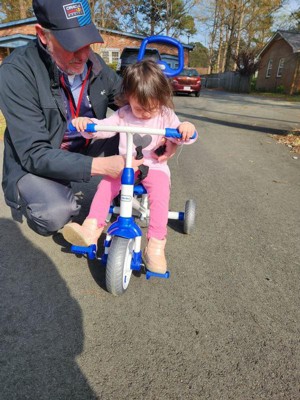 [This review was collected as part of a promotion.] Little tikes tricycle is absolutely the BEST!! They literally thought about EVERYTHING! I had some issues putting it together since the paint on the screws and bolts made it a bit of an issue to twist where they were needed. But to see my daughter smile and learn how to ride is definitely the best! I love that it has a seat belt and the easy to push handle bar so I don't have to break my back while I help her learn. Makes walks more enjoyable as well!