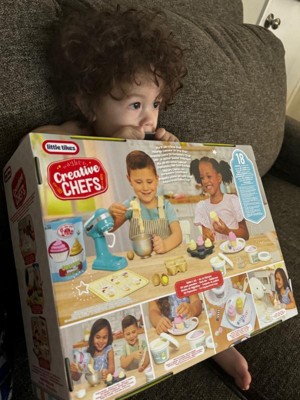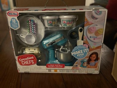 [This review was collected as part of a promotion.] The Little Tikes Creative Chefs baking kit is well made and cute for little ones! It comes with 18 pieces including reusable sand to make cupcakes! I love the mixer! There are no batteries or assembly required! My little ones play with this set all the time!