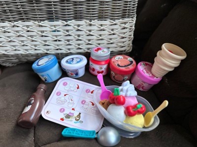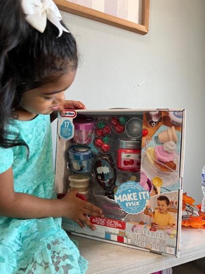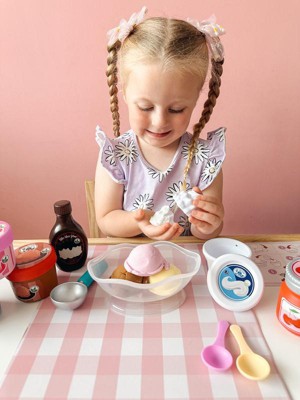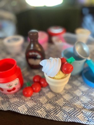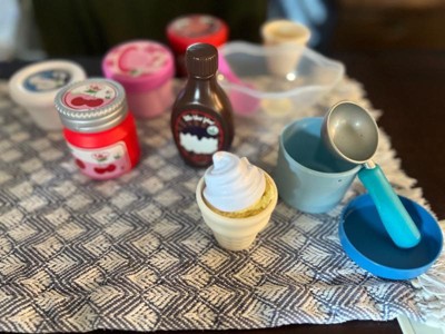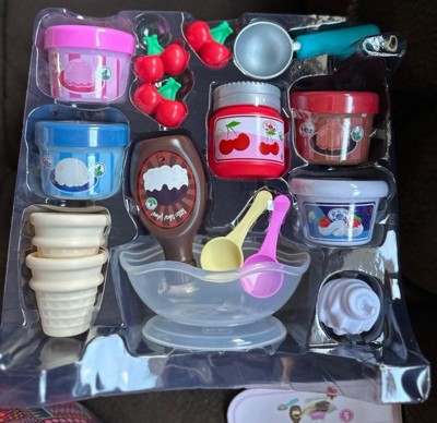 - 17 REALISTIC ACCESSORIES. This ice cream role play set includes 3 flavors of Make-It! Mix ice cream, detailed recipe card, whipped cream mold and container with Make-It! Mix, cherry jar with 3 cherry clusters, chocolate syrup bottle, 2 ice cream cones, ice cream scooper, 2 spoons, and sundae dish.