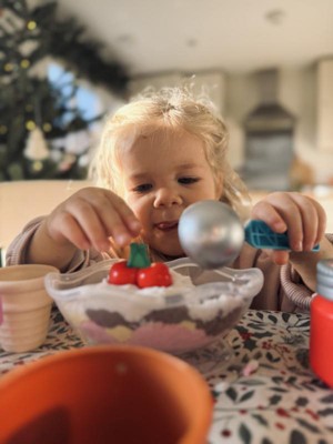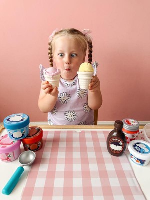 [This review was collected as part of a promotion.] Cute toy set for imaginative play, comes with a few different toppings and different dough colors for multiple ice cream scoops! Gave 4 stars because the dough smelt really bad of chemicals, they should add ice cream scents to them to make it even better!