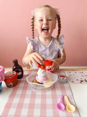 This kit includes hyper-detailed play food, a functional ice cream scoop, a sundae dish, and other utensils, offering a realistic culinary experience. The packaging unfolds into a portable play table, creating a workstation for kids to assemble their sweet treats, whether playing alone or with friends.