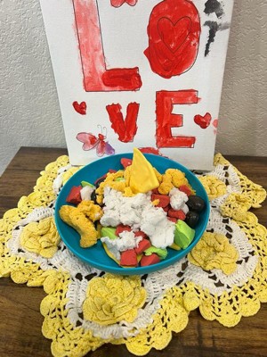 [This review was collected as part of a promotion.] This nacho play set is so much fun, my kids haven’t stopped playing with it since it showed up. It has a kinetic sand type of material that allows kids to cut, shape and play with on top of the normal play food. It comes with tomato, avacado, chips, sour cream, and even black beans. The box turns into your own personal table and plate as well! Hours of fun for the whole family.