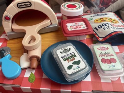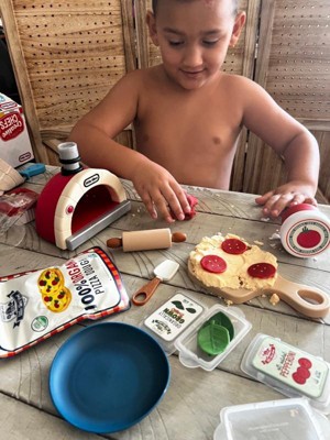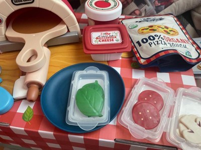 - 22 REALISTIC ACCESSORIES - This pizza role play set includes a pizza dough bag with Make-It! Mix™, tomato sauce jar with Make-It! Mix™, cheese container with Make-It! Mix™ mozzarella, detailed recipe card, pizza oven, 3 pepperonis with container, 3 mushrooms with container, 3 basil leaves with container, pizza board, working pizza cutter, rolling pin, spatula, and plate.
