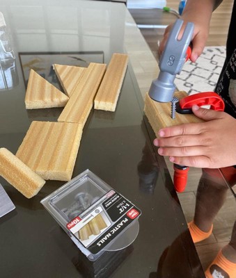 [This review was collected as part of a promotion.] I about died when I saw the tiny box of plastic nails in this set! The whole thing is very cute, and perfect for little kids who want to practice their DIY skills! You will probably want to get some refill foam wood pieces, because they aren't as sturdy as, you know, real wood. But the rest of the set is quality and will be able to be played with for a long time.