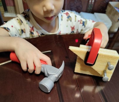 [This review was collected as part of a promotion.] The set includes a small hammer, plastic screws, and soft sponge blocks that mimic real wood — perfect for safe and creative play. What I love most is how it encourages hands-on learning. My child gets to "build" things just like a real carpenter, developing fine motor skills and problem-solving abilities along the way. The materials are soft and safe, so I don’t have to worry about injuries, and everything is perfectly sized for little hands. It's a wonderful toy for imaginative play, and it keeps my child engaged for hours. Highly recommended for any little builder or curious toddler who loves to create!