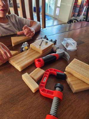 [This review was collected as part of a promotion.] Great starter set for kids who love to build! The tools are realistic but completely safe, with plastic nails and foam “wood” that let kids hammer without any mess. My child loves using the clamp and hammer—it’s fun, sturdy, and the perfect size for little hands. It’s not only entertaining but also helps with fine motor skills, hand-eye coordination, and creative play. The materials are durable, and I appreciate that safety is clearly built in.