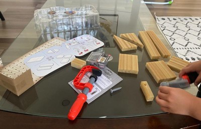 [This review was collected as part of a promotion.] This is a cool concept. I wish the wood pieces were meant to actually build something. It does leave you to create your own thing but the pieces don’t really even make a house. I think it’d be cool if you could actually put together something with the pieces. One of the tools my son broke literally the same day… I think it’s great but definitely can be better!