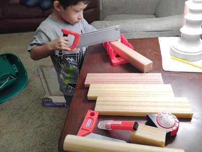 [This review was collected as part of a promotion.] This measure and cut set is so detailed! It not only features a working measuring tape but also a functioning marker. The foam is very easy to cut, and the included cutting square and miter box are a lovely touch. My son has a blast using this set, and I love that the saw is safe to use.