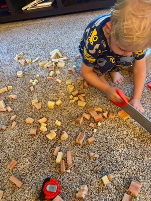- REALISTIC FOAM WOOD. The pretend wood is made of foam that is easy to cut and assemble. This kid-safe, mess-free alternative allows for fun, realistic, and creative play.