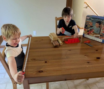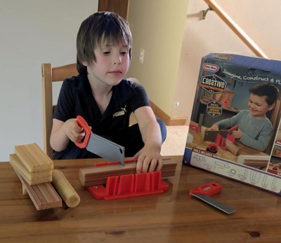 [This review was collected as part of a promotion.] This was so much fun!! My kids had an absolute blast with this Little Tikes Construction Measure and Cut set. It includes a miter saw, miter box, multiple different planks, marker, carpenter's square and measuring tape. Altogether this lets you measure, mark your cuts and saw the planks. The boards look like wood, but they're actually foam so everything is safe and mess-free. My boys made a little project where they used all the tools to make a house. I wish there were refills of the boards that you could buy. That way they could build even more.