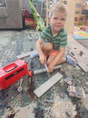 [This review was collected as part of a promotion.] The toy itself is mostly a “boy” toy although my daughter likes playing with it too! There’s a lot of pieces and not all fit in the tool box maybe a tool bag would be a great addition to this toy! Overall cool toy. Definitely would recommend to a boy mom. Not safe for kids under 4 years old. Chocking hazard. Kids learn to use tools the safe way!