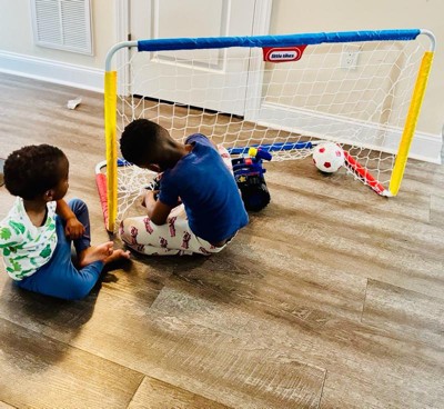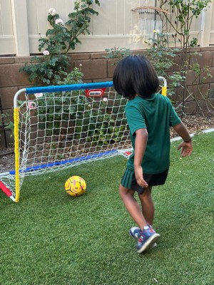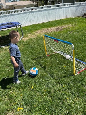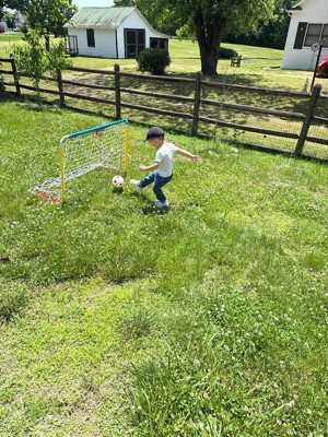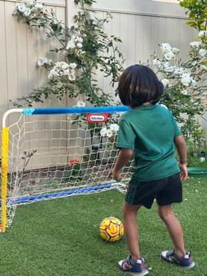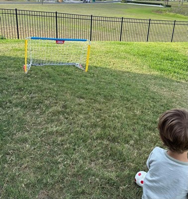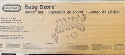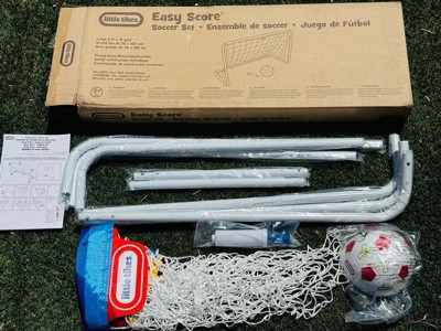 [This review was collected as part of a promotion.] The Little Tikes Easy Score Soccer Set is a popular introductory soccer goal designed for toddlers and young children. * **Key Features:** * Includes one soccer goal and one soft soccer ball. However, the pin to the pump was not included to air up the ball so the ball could not be shown. * Features a durable, lightweight plastic frame that is easy to assemble and move. * Designed with a wide, low opening to make scoring easy for young players. * Bright, colorful design. * **Benefits:** * Encourages outdoor play and physical activity. * Helps develop gross motor skills and coordination. * Builds confidence and introduces the basics of soccer. * Easy for young children to understand and use. * Portable for play in different locations. * **Considerations:** * Size is suitable for toddlers and preschoolers. * The included ball is soft and lightweight, appropriate for young ages but not for more advanced play. * **Overall:** * A great starter soccer set for very young children to learn the fundamentals of the game and enjoy active play.