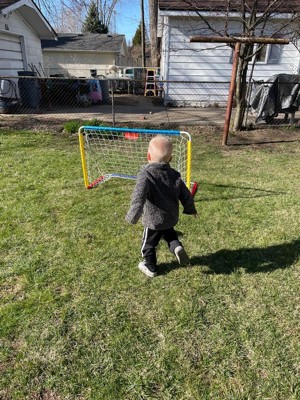 [This review was collected as part of a promotion.] My toddler loves soccer and this was such a great way to help him practice at home. Quite easy to put together since the parts are labeled so well. I found it difficult to transport as is to take to parks since it doesn’t fit in the trunk. So I un assemble and carry it to the park . Overall I am quite happy with it
