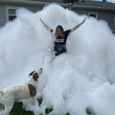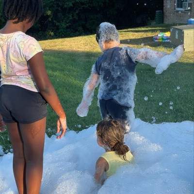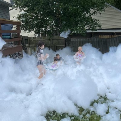 - JUST ADD WATER: Within minutes you’ll have everything you need for foamy fun! Includes: Foam Solution, Blower, Hose, Foaming Adaptor, Water Pump, Stand, and Storage Bin/Bucket