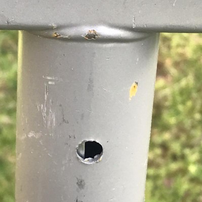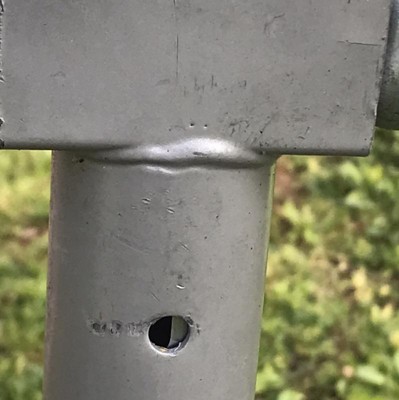 The precut holes for screws to go through do not line up correctly on the legs. The support screws then cannot go through the holes. Within one week outside, the t shaped parts on the legs show rust. The metal pipes have some dark film on them that gets on hands every time they’re touched. Did not even try to assemble past the legs. Box was delivered ripped and some of the pool noodle type material covering pipes was torn. I like little tykes but not for this product.