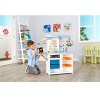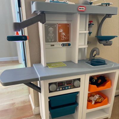 - This pretend play vet station has interactive features like a working pretend play scale; an adjustable, working overhead exam light; a folding checkup counter; x-ray station and more