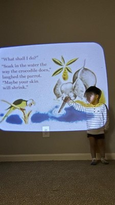 Designed to develop early reading skills, the Story Dream Machine projects words and images onto the wall, allowing children to follow along with the narrator while enjoying vibrant visuals and delightful sound effects.