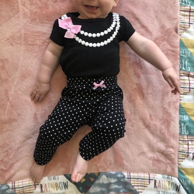 Little Treasure Baby Girl Cotton Bodysuit, Pant and Shoe 3pc Set, Pearls Short-Sleeve, 0-3 Months